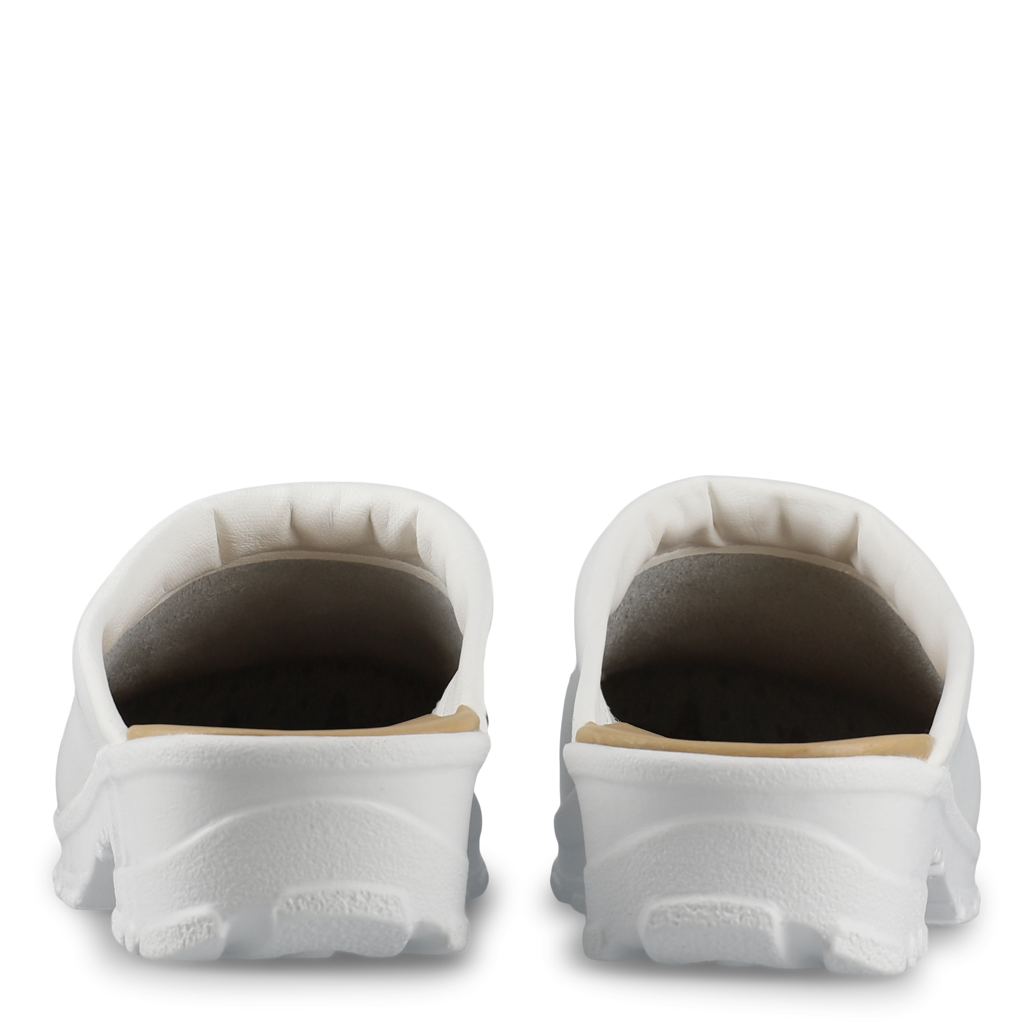 Komfortabel og fleksibel tøffeltræsko. Bred pasform og god stødabsorbering. Blød og ekstra behagelig LBS-sål af læder.